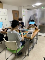 最初はずれたりと苦戦しますが、慣れると黙々と取り組むことができる作業です☆プラスチック箱の両面テープ貼りです!